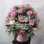 Arreglo floarl elaboardo en rosas , con globo burbuja personalizado.