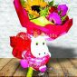 arreglo floral, con rosas amarilas y flores exoticas aves del paraiso, heliconias .